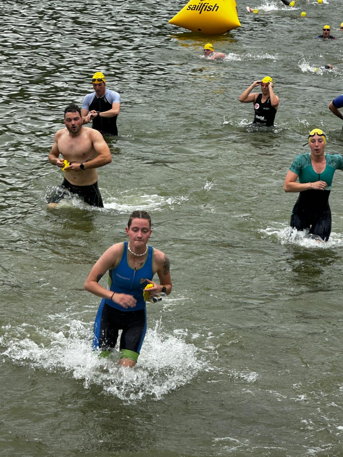 Der Schwimmstart war mit etwas über 300 Startern etwas eng, aber wir kamen gut weg und waren untern den ersten 10 die auf die Radstrecke gingen, dort verloren wir wieder ein paar Plätze, die wir dann beim laufen teilweise wieder gut machen konnten.
